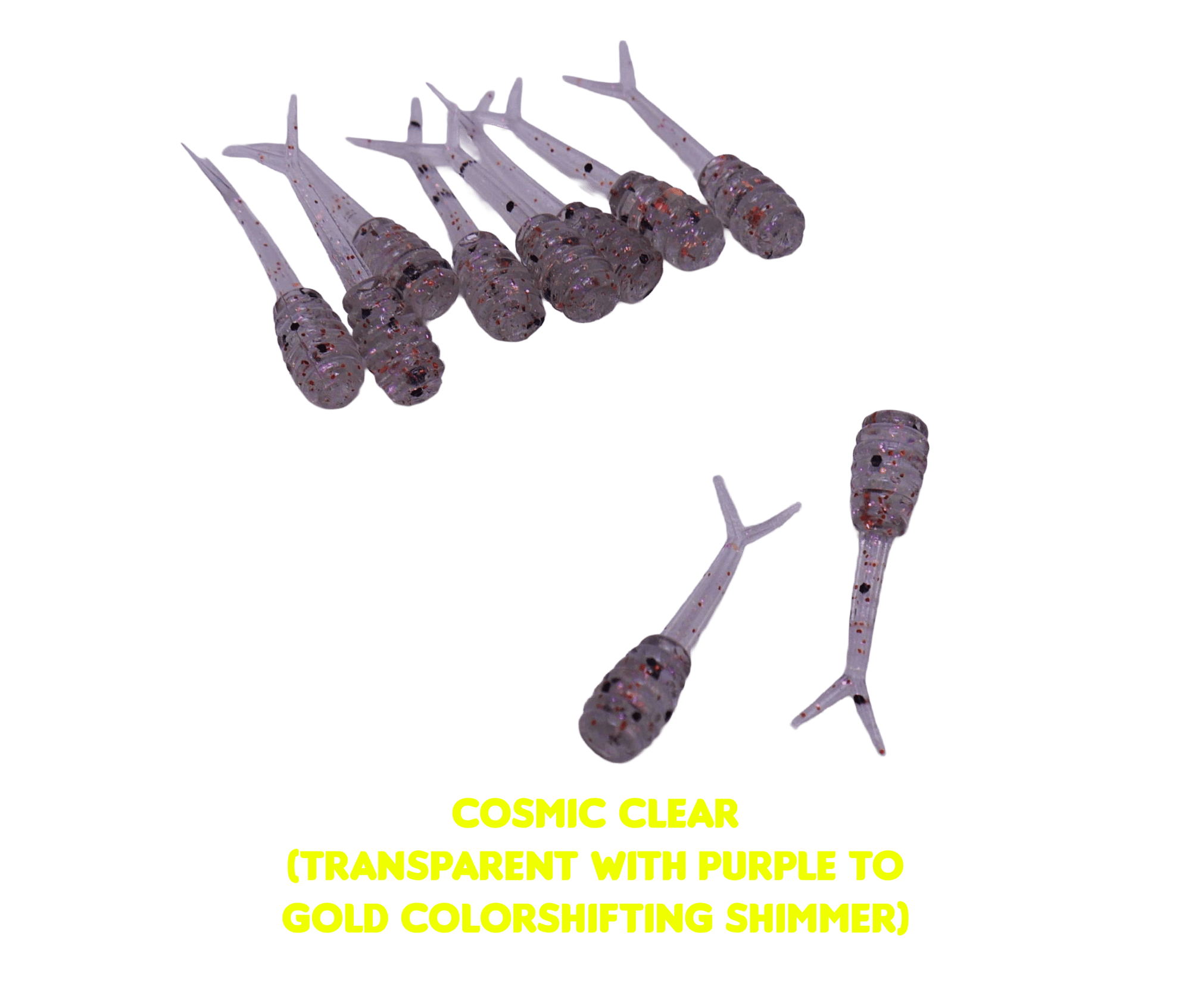 The .8" Ice Jerk measures 0.8" long from tip to tail and the thickest part of the body is .18" in diameter. It has a grub shaped head for easy rigging on small ice jigs.